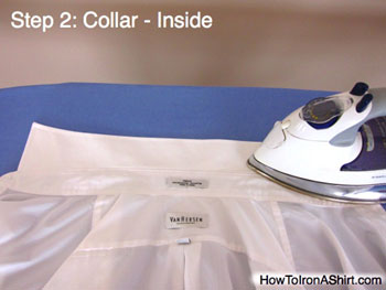 Step 2: Collar - Inside: Flip the shirt over and iron the inside of the collar in the same way.